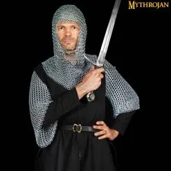 Mythrojan Chainmail Shirt With Coif Medieval Knight Armor Costume – Zinc Polish