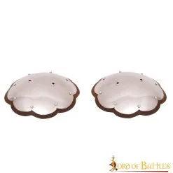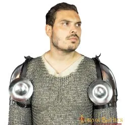 14th Century Light Roundel Spaulders With Leather Cut Edges 16 Gauge