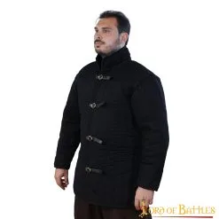 Medieval Padded Canvas Cotton Gambeson (Type 3) With Side Buckles Black And Ecru