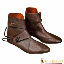 Mythrojan XII To XV Century Medieval Leather Shoes, Ideal For SCA LARP Reenactment Ren Fair Medieval Events, Full Grain Leather, Brown