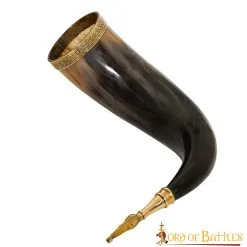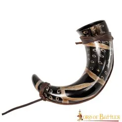 Algiz Protection Rune Drinking Horn With Brass Decoration Genuine Ox Horn