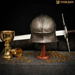 Wooden Helmet Stand For Medieval Helmets With Or Without Aventail