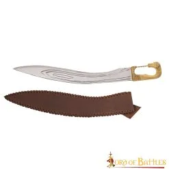 Decorative Falcata Sword With Pure Brass Handle And Leather Scabbard