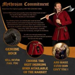 Mythrojan THE KNIGHT OF REALM Viking Drinking Horn With Black Leather Holder Authentic Medieval Inspired Viking Wine/Mead Mug – Polished Finish
