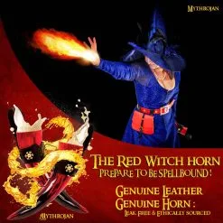 Mythrojan The RED Witch Viking Drinking Horn With Black Leather Holder Authentic Medieval Inspired Viking Wine/Mead Mug – Polished Finish