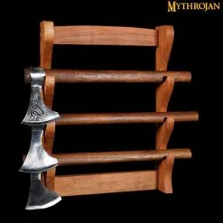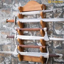 Mythrojan Wooden Sword Stand : Deluxe Solid Wood Two Tier Stand