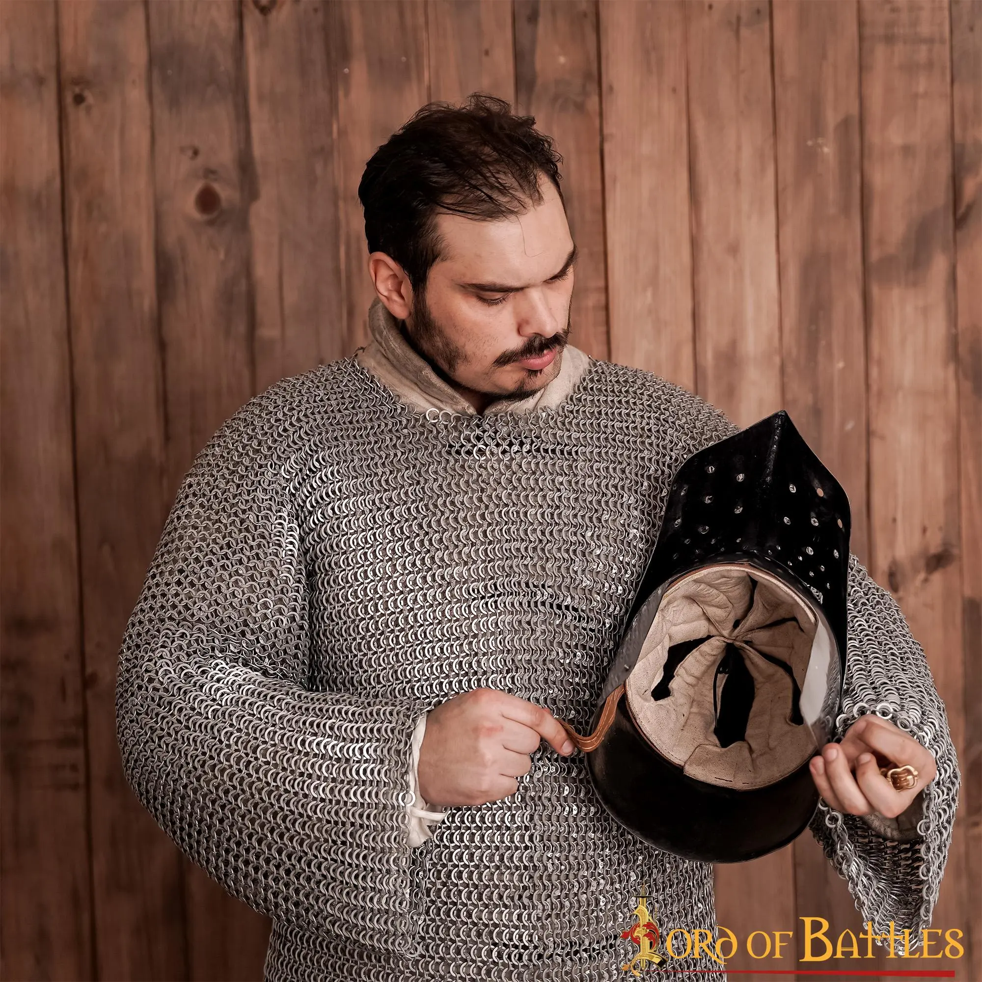 Are you looking for a versatile, FULLY FUNCTIONAL helmet for your next tournament or battle? Directly inspired by 14th-century sources, this visored BATTLE READY Bascinet will make an excellent choice for a knight like you as its carefully designed visor ensures minimal vision loss and breathing hindrance.