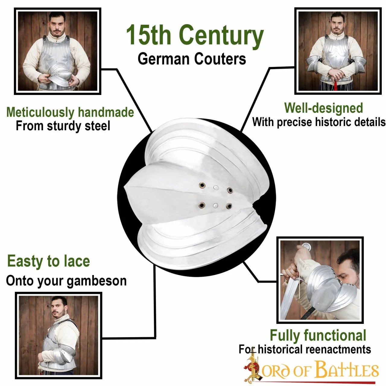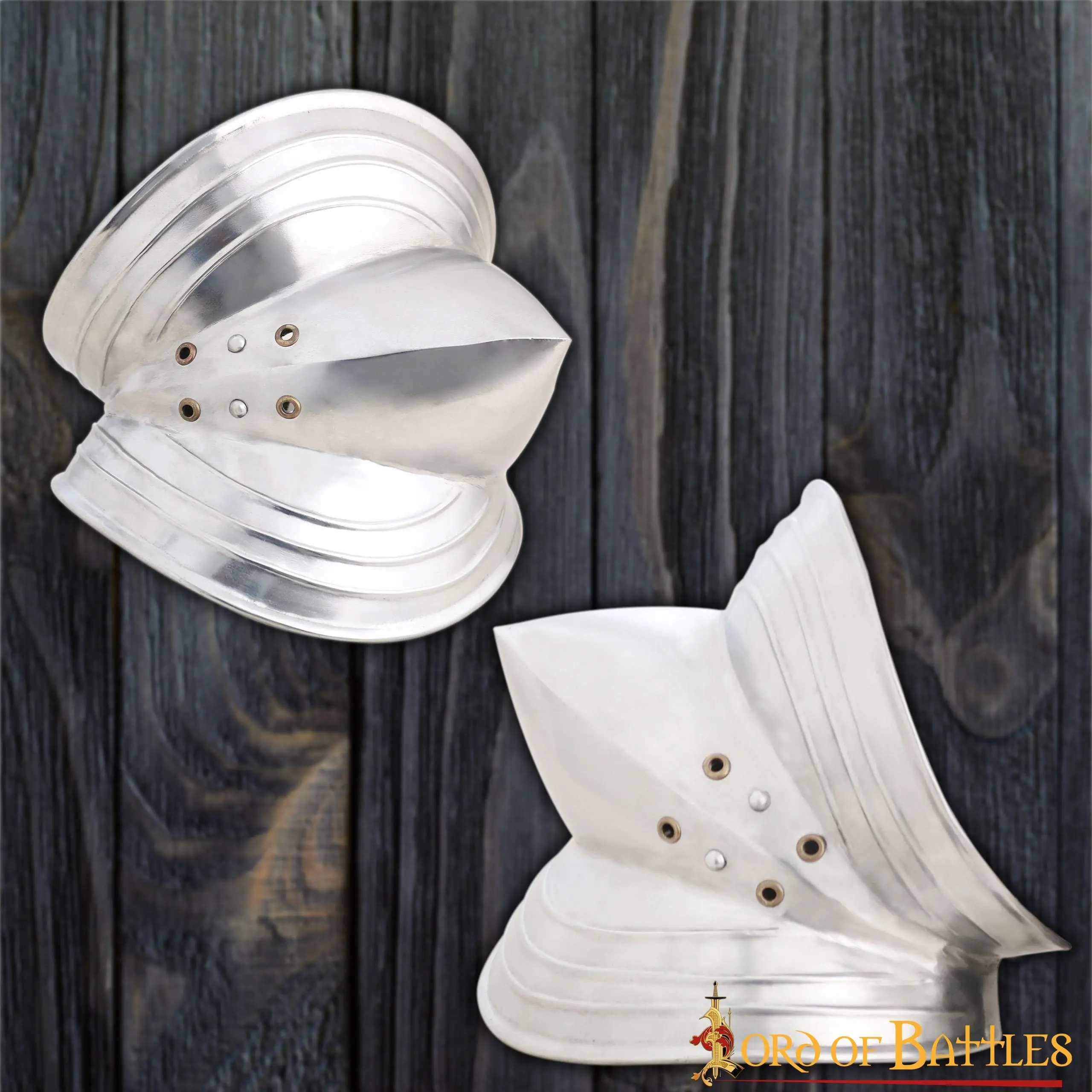 These Couters are painstakingly HANDMADE from sturdy 16 gauge MILD STEEL. These are FULLY FUNCTIONAL for a LATE MEDIEVAL KNIGHTLY BATTLE REENACTMENT.
