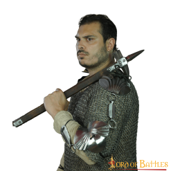 The two shells fit the shoulder and elbow perfectly for a more comfortable experience when donned. To fasten them to your arm, we provide a pair of authentic leather cords.