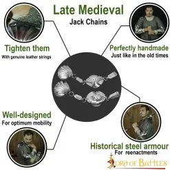 Our classic Jack Chains are hand-forged from 18 gauge steel and are perfect for light & historical arms protection. Their unique design and pattern make them ideal for reenactment and LARP.