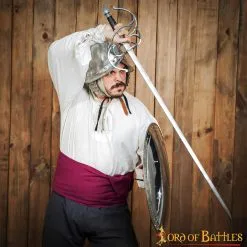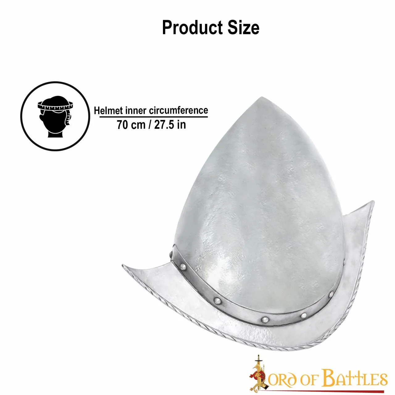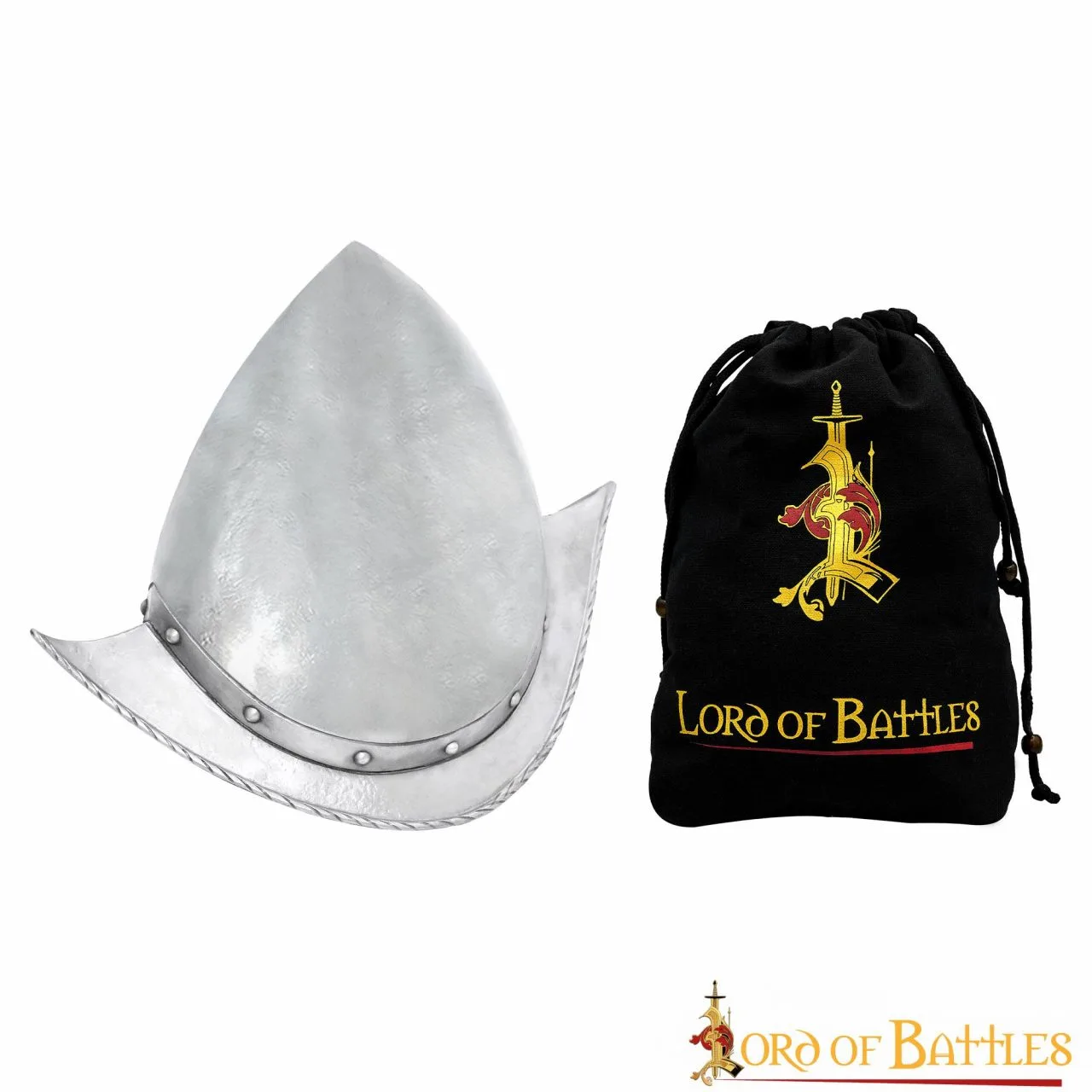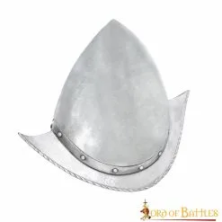 This emblematic helmet is of the Spanish infantry, the glorious men of the Tercios, renowned adventurers who conquered the new world during the 16th century. It was favored by infantry all around Europe but especially loved by this valiant infantry for providing significant protection from most of the attacks encountered on a 16th-century battlefield. It also proved quite utilitarian during siege warfare, where blows were often charged from above.