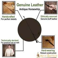 Mostly used to tame those savage horses from the wild, you need to have the right weapon, and this horsewhip will make sure to do the work for you! It is carefully crafted for an expert hostler like you! This horsewhip is a fully functional leather accessory and should be used with extreme caution.