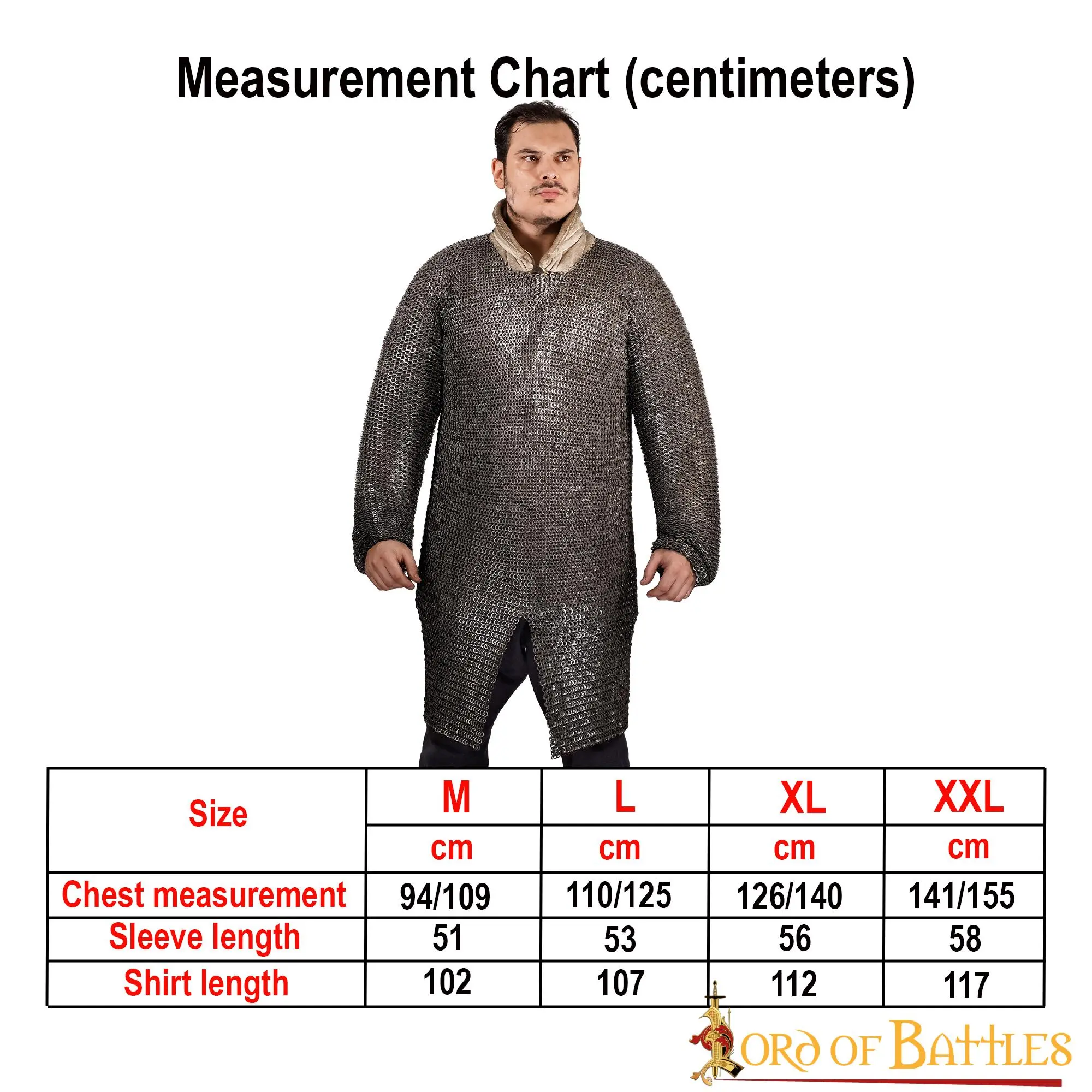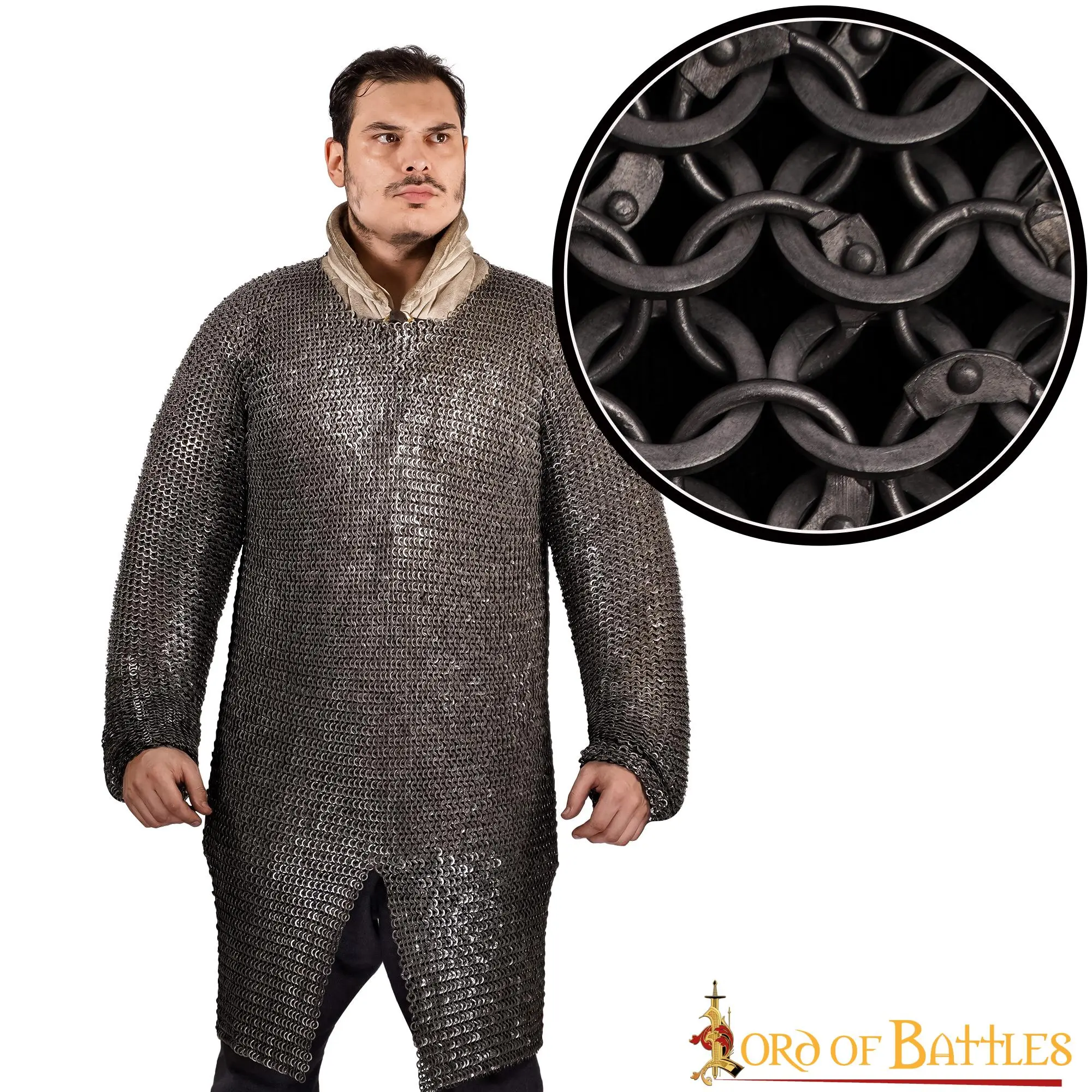 Meticulously handmade by our skilled artisans, this chainmail hauberk shirt will make sure to provide robust protection on the battlefield. Wear it under your surcoat and pair it with a belt which will allow a better weight distribution and will make the wearing of your hauberk more effortless!