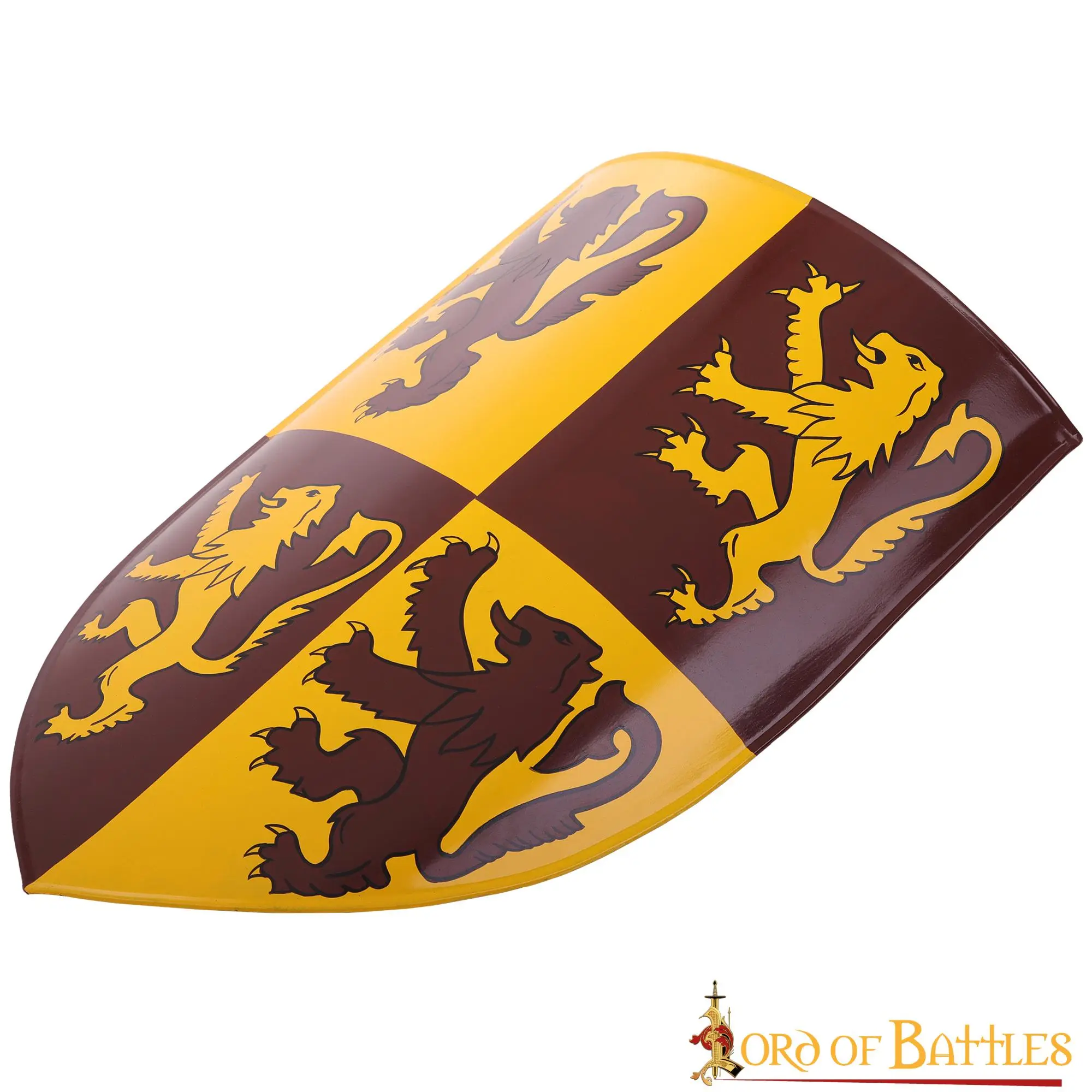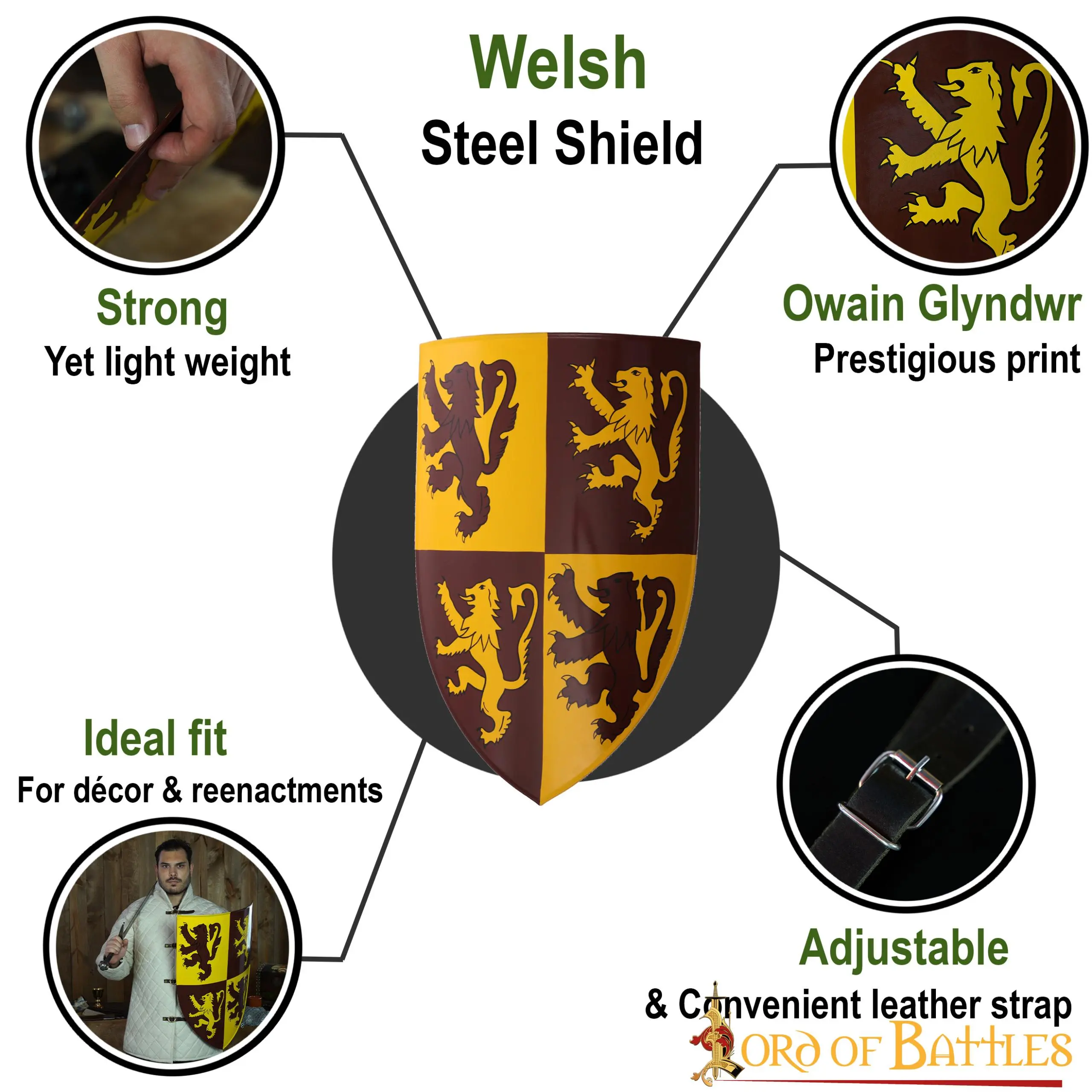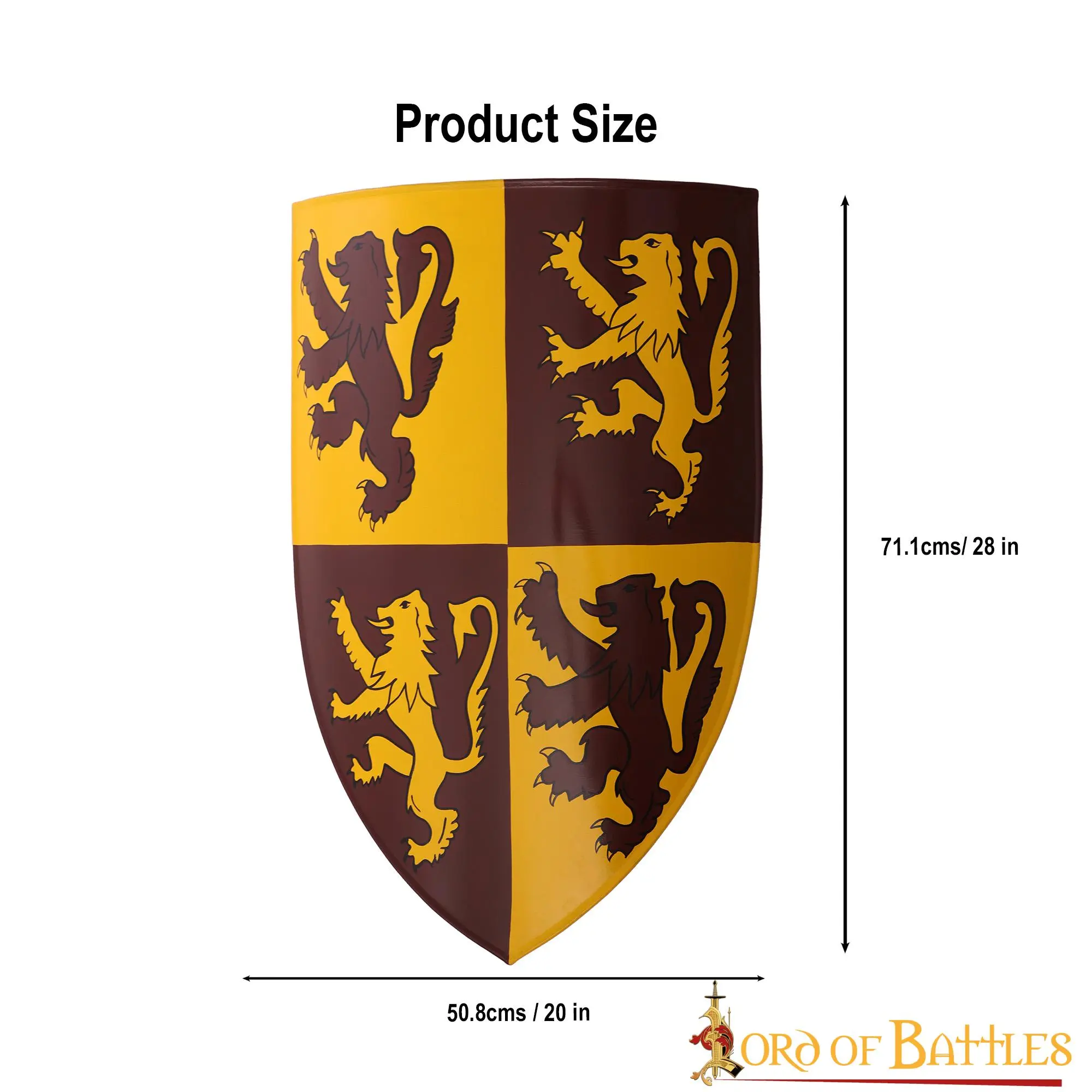 With the prestigious shield that resembles none other than Owain Glyndwr’s shield, you will surely raise the bar with your décor! Perfectly decorated with heraldic rampant lion design, this portrays an amazing regal look and will surely enhance your medieval or contemporary setting.