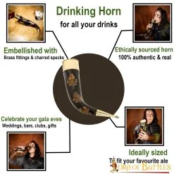Be it glugging ales with your friends or simply adorning your décor, our drinking horn with gorgeous charred leaf design is just the right fit. It is well embellished with ornate brass fittings that make it visually appealing and also make them a perfect gift for your loved ones! Since we love to care for our natural products as much as you do, we supply this horn with high quality, sturdy, cotton canvas bag that will keep it safe and protected for years to come.