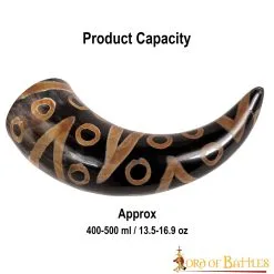 What’s fascinating about our drinking horn is its GENUINE origin. The total capacity of the horn is approx. 400-500 ml (of a liquid with up to 20% alcohol content). Please avoid dishwashers and hot beverages. Before use, make sure to wash under running water. For a longer life, treat with bees’ wax after each use. Please note this is a natural product that decays with time and, hence cracks may come.