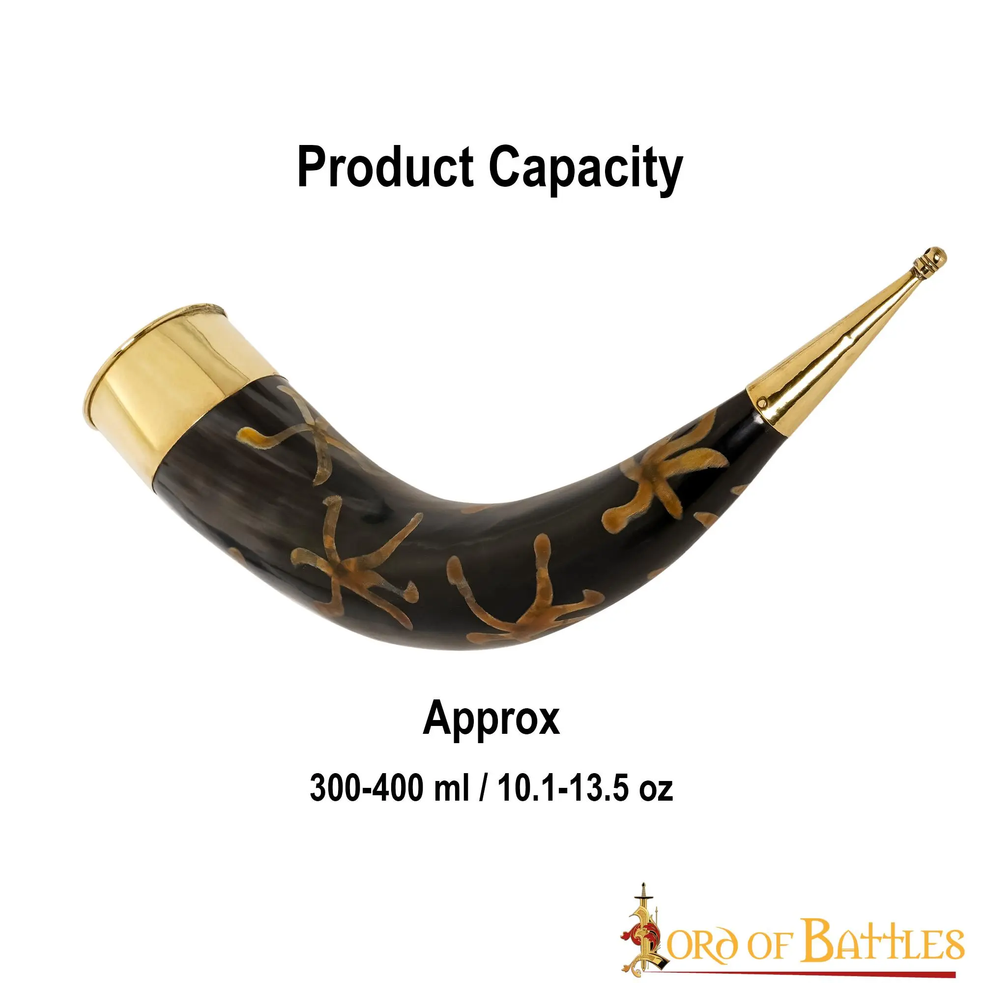This drinking horn is HANDCRAFTED from a GENUINE OX HORN. The total capacity of the horn is approx. 300-400 ml (of a liquid with up to 20% alcohol content). Please avoid dishwashers and hot beverages. Before use, make sure to wash under running water. For a longer life, treat with bees’ wax after each use. Please note this is a natural product that decays with time and, hence cracks may come.