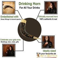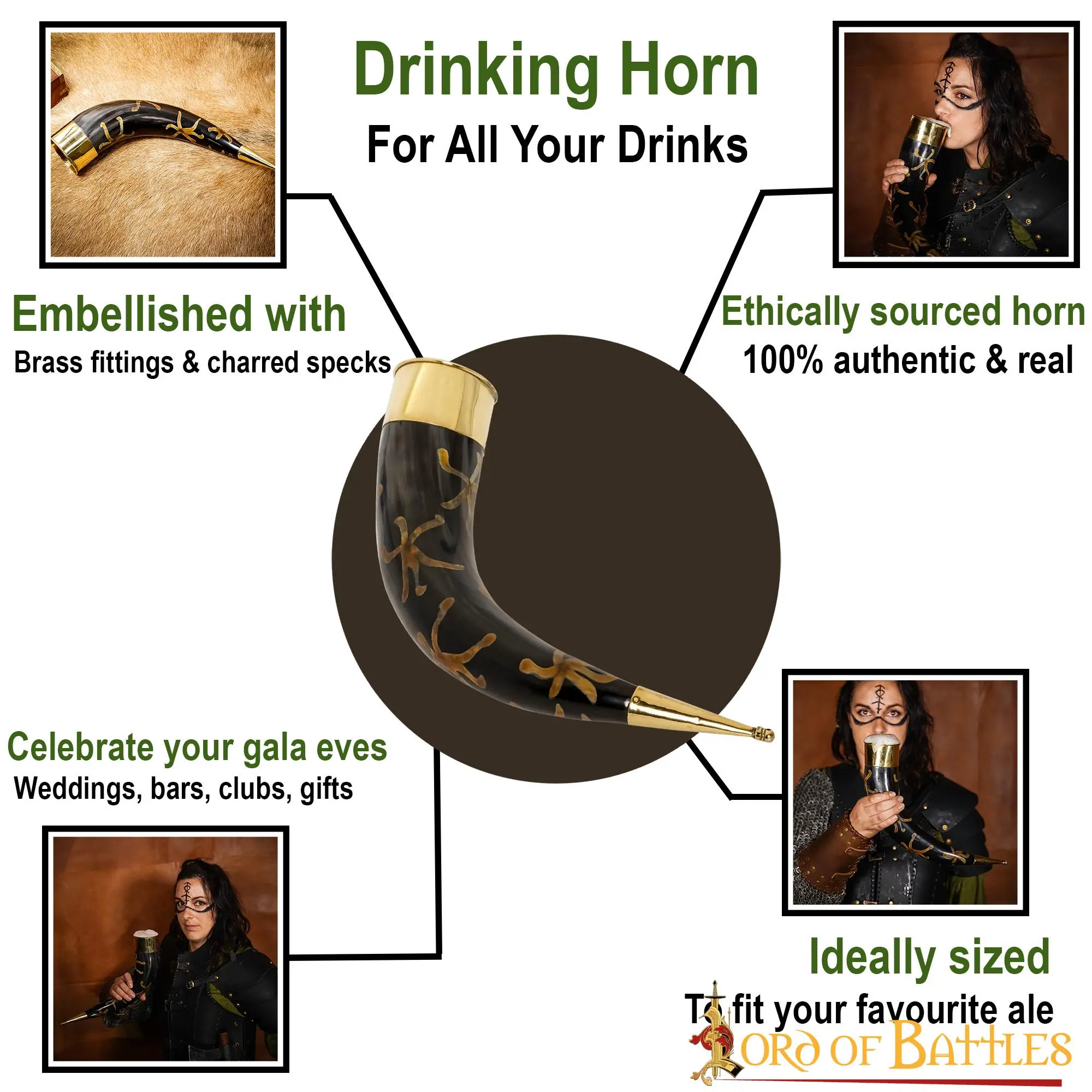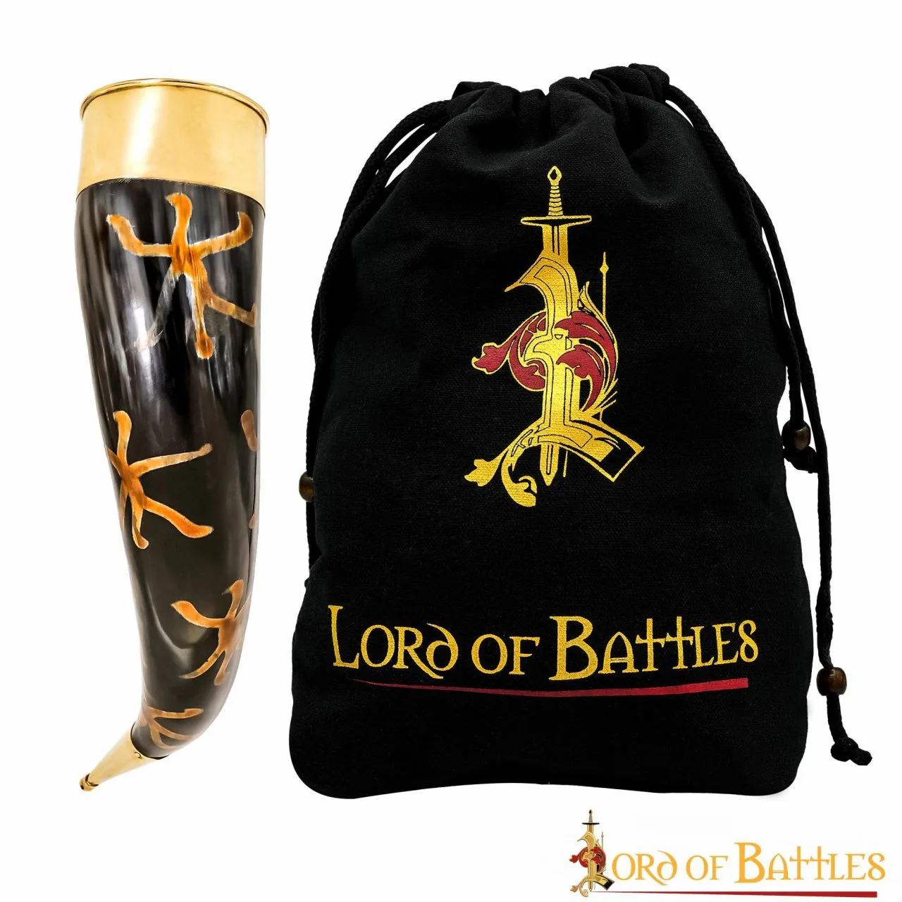Be it glugging ales with your friends or simply adorning your décor, our drinking horn with beautifully charred specks is just the right fit. It is well embellished with ornate brass fittings that make it visually appealing and a perfect gift for your loved ones! Since it comes with a sturdy canvas bag, it can effortlessly be taken care of for years to come!