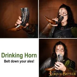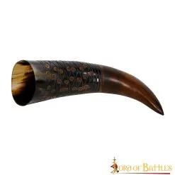 This drinking horn is handmade from a genuine Ox horn. The total capacity of the horn is approx. 400-500 ml (of a liquid with up to 20% alcohol content). Please avoid dishwashers and hot beverages. Before use, make sure to wash under running water. For a longer life, treat with bees’ wax after each use. Please note this is a natural product that decays with time and, hence cracks may come.