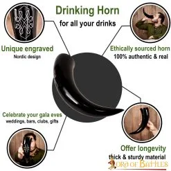Be it glugging ales with your friends or simply adorning your décor, our drinking horn with the engraved Nordic design, is just the right fit! Its unique design and visually appealing black front make it great for gifting it to your loved ones as well! Since it comes with a bag, it can effortlessly be taken care of for years to come!