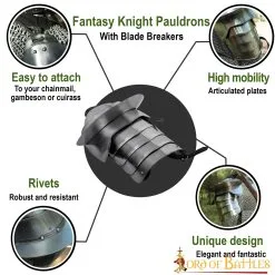 Our matched pair of Medieval Steel Pauldrons with articulated plates of 18 gauge mild steel is the ideal accessory for any knight or heavy infantry soldier from your favourite fantasy universe.