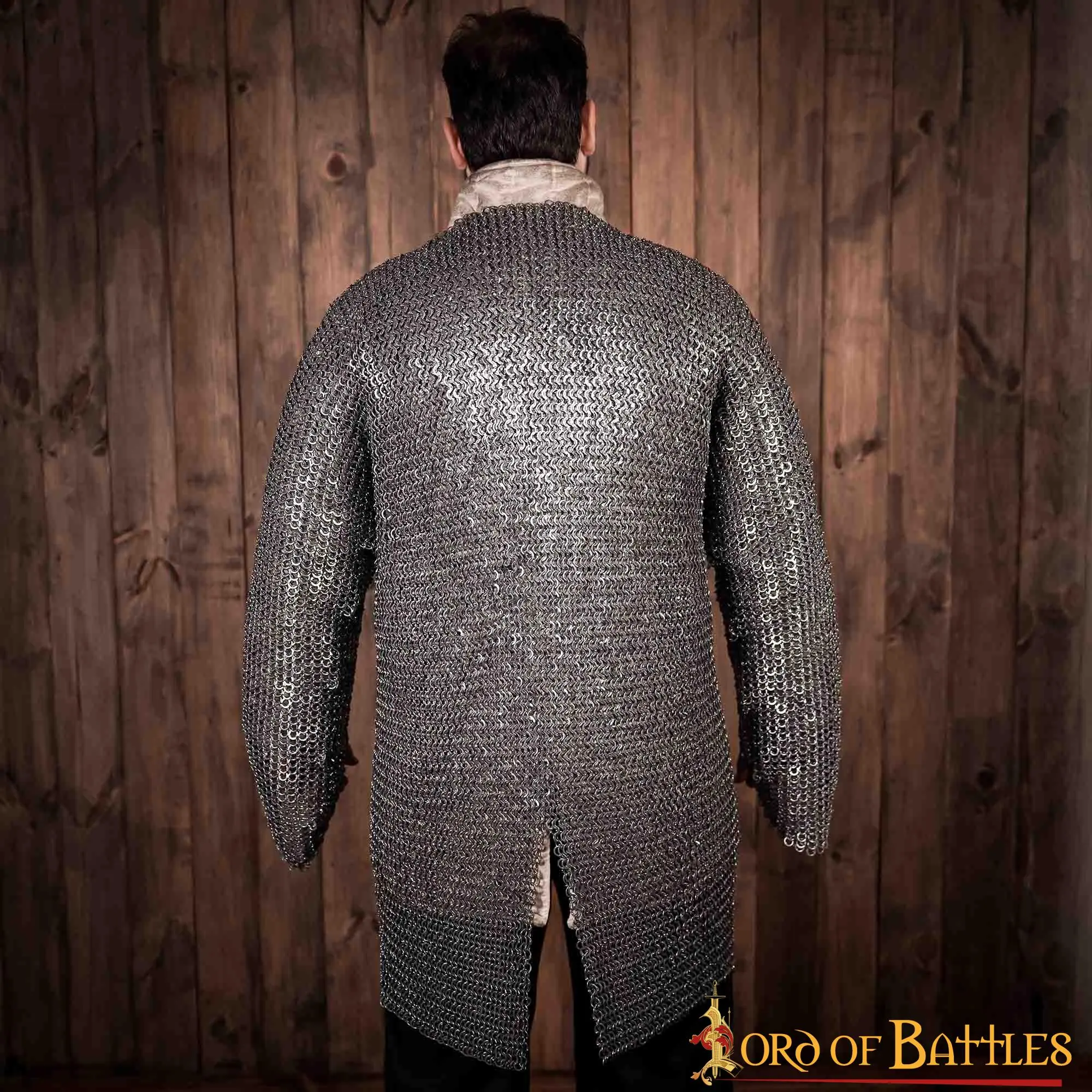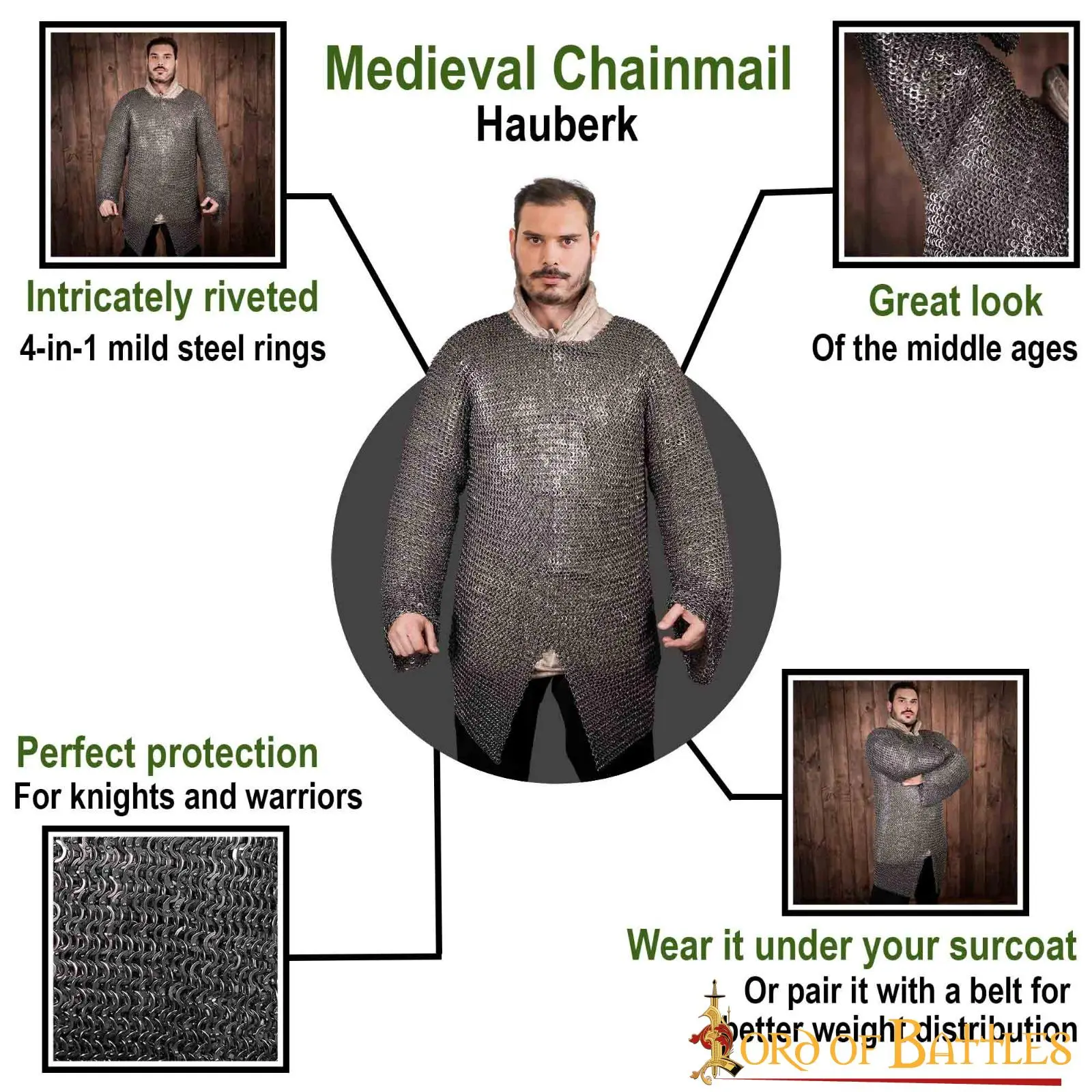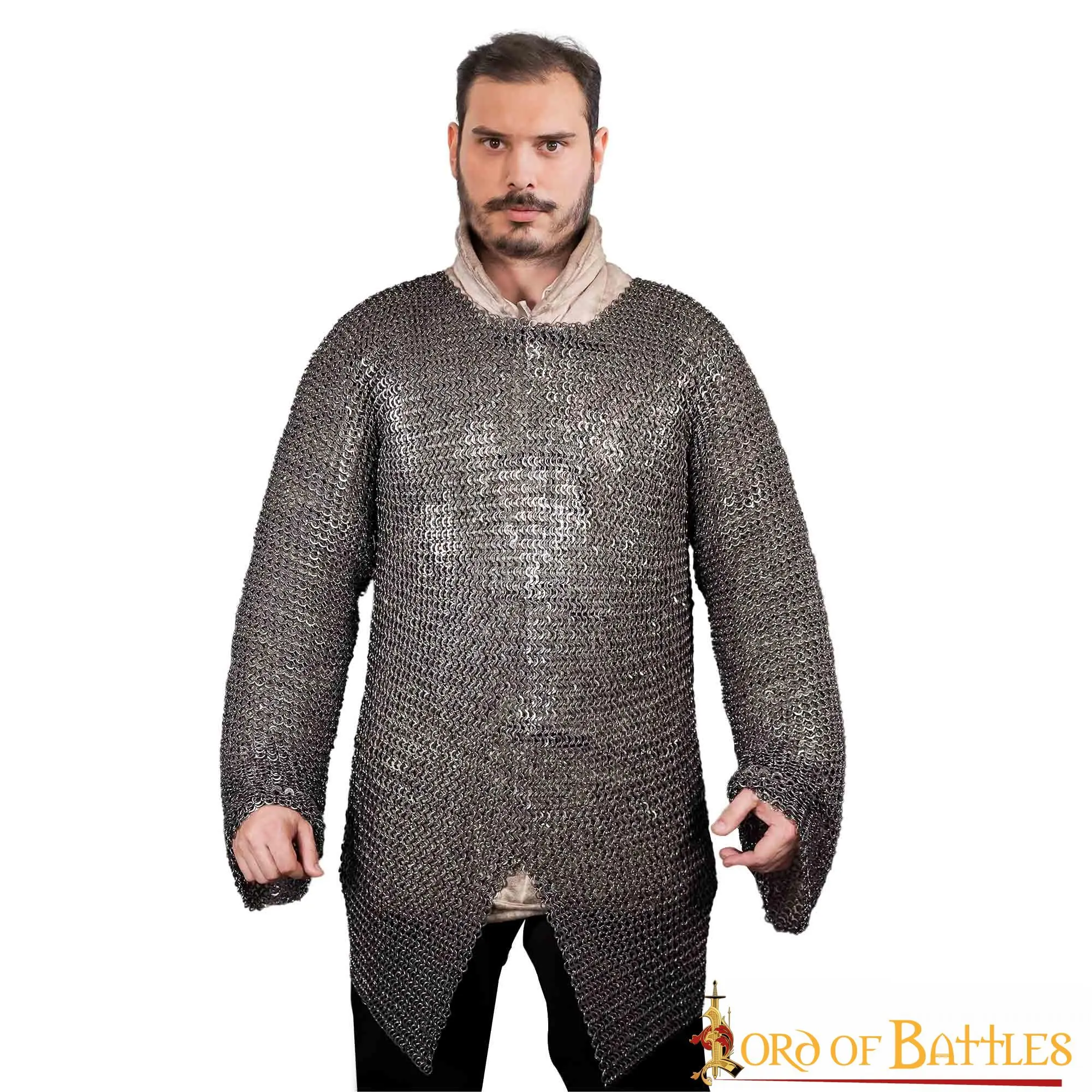 Meticulously handmade by our skilled artisans, this chainmail hauberk shirt will make sure to provide robust protection on the battlefield. Wear it under your surcoat and pair it with a belt which will allow a better weight distribution and will make the wearing of your hauberk more effortless!