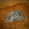 This half hauberk is intricately HANDMADE from 17 gauge mild steel rings with a diameter of approx. 9 mm each, riveted using DOME RIVETS. For increased strength, the rings alternate with SOLID FLAT RINGS. It comes in three sizes: medium, large and extra-large.