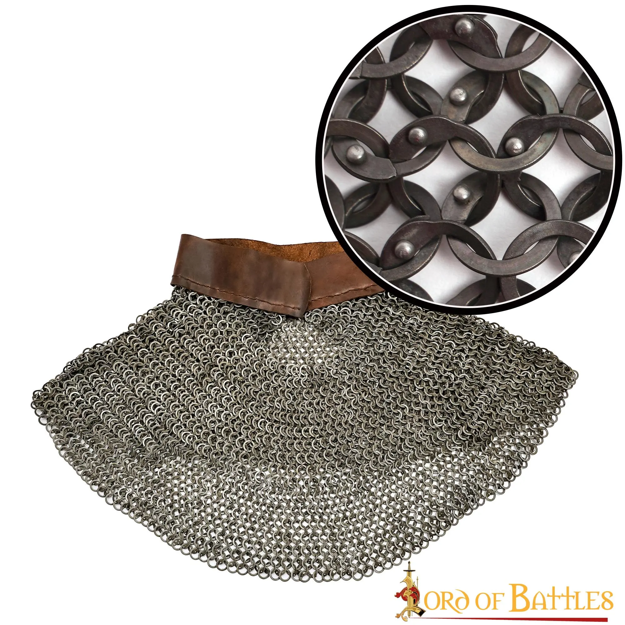 Our aventail is HANDMADE by our skilled artisans using 17 gauge, dome riveted FLAT TITANIUM RINGS with a diameter of approx. 9 mm each. All our titanium aventails are also definitely one of the best-sellers with MOVIE PROP COMPANIES, THEATRES, AND ALL KINDS OF COSTUME DESIGNERS BECAUSE OF THEIR AMAZING LIGHTWEIGHT, EXTREMELY REALISTIC VISUAL APPEARANCE that not only appeals to a large audience on screen but also avoids tearing up the actor wearing them during the filming or during the performance.