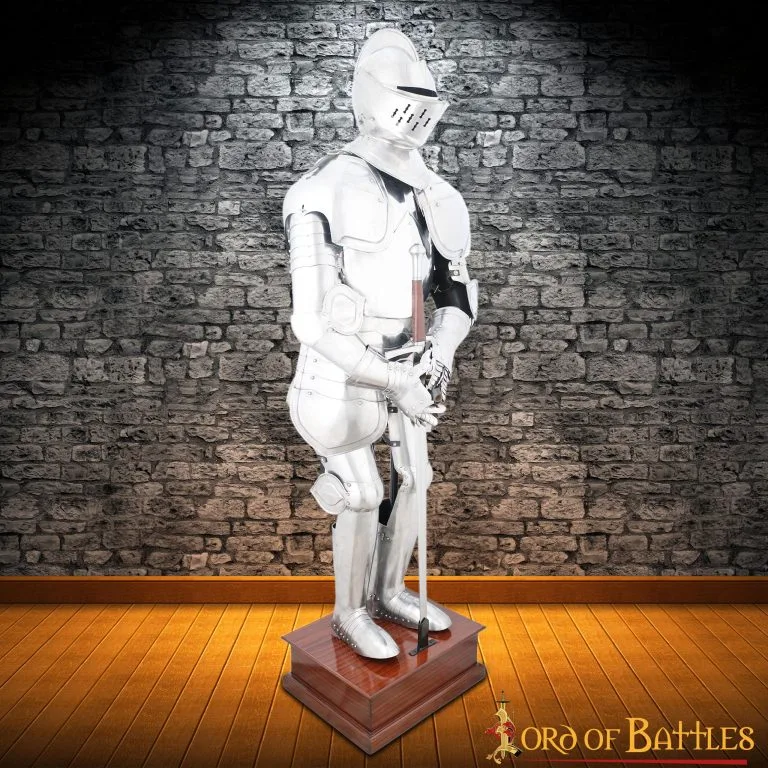 This full suit of armour is loosely inspired by Charles the Bold, the last Duke of Burgundy’s tragic history. So if you’re looking to revamp your décor with a classic Burgundian war theme, or even for a contemporary setting, this suit of armour will marvellously complete any setting.