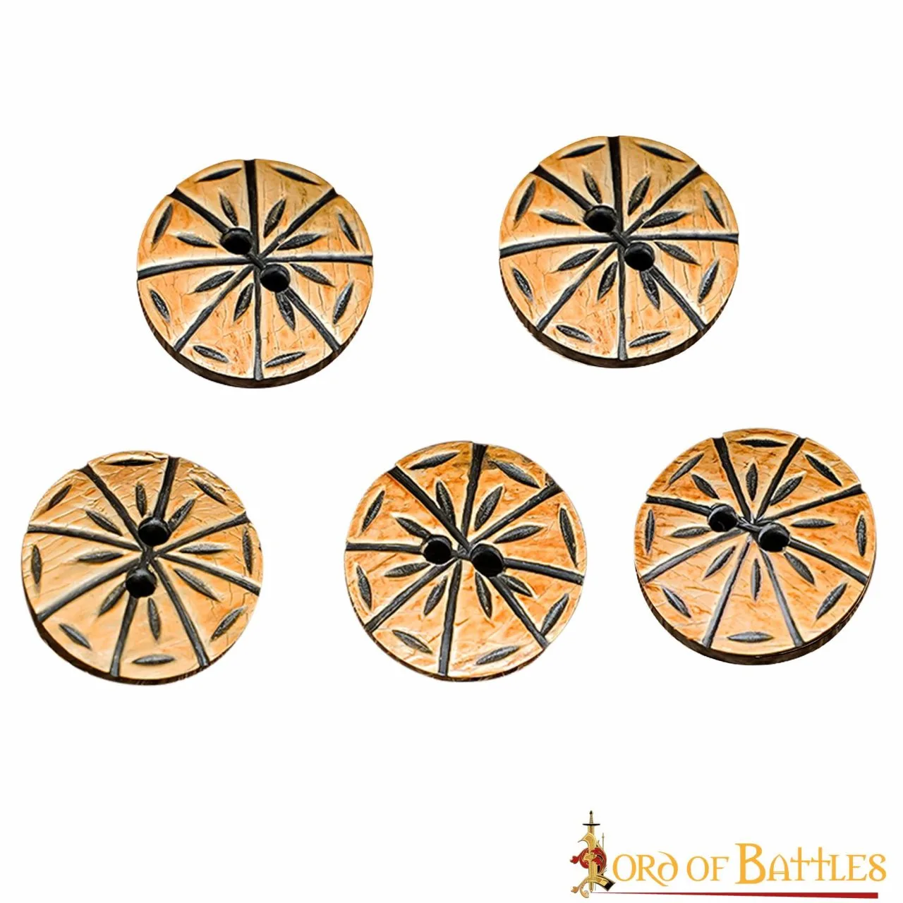 Genuine Horn Buttons With Geometric Motifs Set Of 5