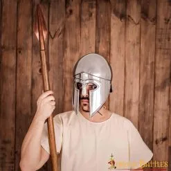 It was the favourite helmet of most Greek Hoplites heavily armoured spearmen during the Archaic and early Classical period, and even the famous Athenian leader, Pericles, was portrayed wearing it. Later on, it gave way to lighter forms of helmets that impeded less the hoplite’s vision and hearing but kept being used in a slightly modified fashion by the Italians as the “Italo-Corinthian” helmet up to the rise of the Roman Empire.