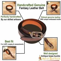 Looking for a belt that can fit your modern-day outfit and your LARP or Cosplay costumes at the same time? This well-designed belt is exactly the leathercraft you should get! And effortlessly invigorating its look, is its buckle that makes it truly irresistible.