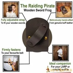 Made from robust genuine leather, our sword frog is made for all your naturally crafted wooden swords (sold separately). Complement it well, with your pirate or LARP costume by simply passing a belt through the firmly fixed belt loop!
