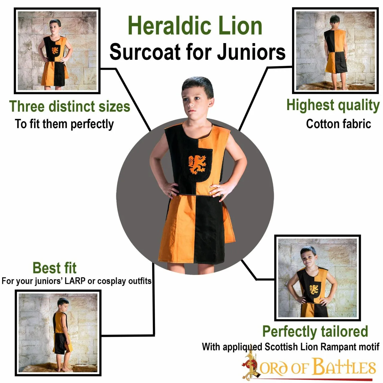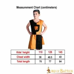 While you reenact the middle ages knight, your junior joins you with this gorgeous heraldic surcoat/tabard made just for them! This makes it a perfect accessory to give a rich medieval look to any beginner’s costume!
