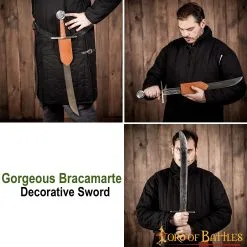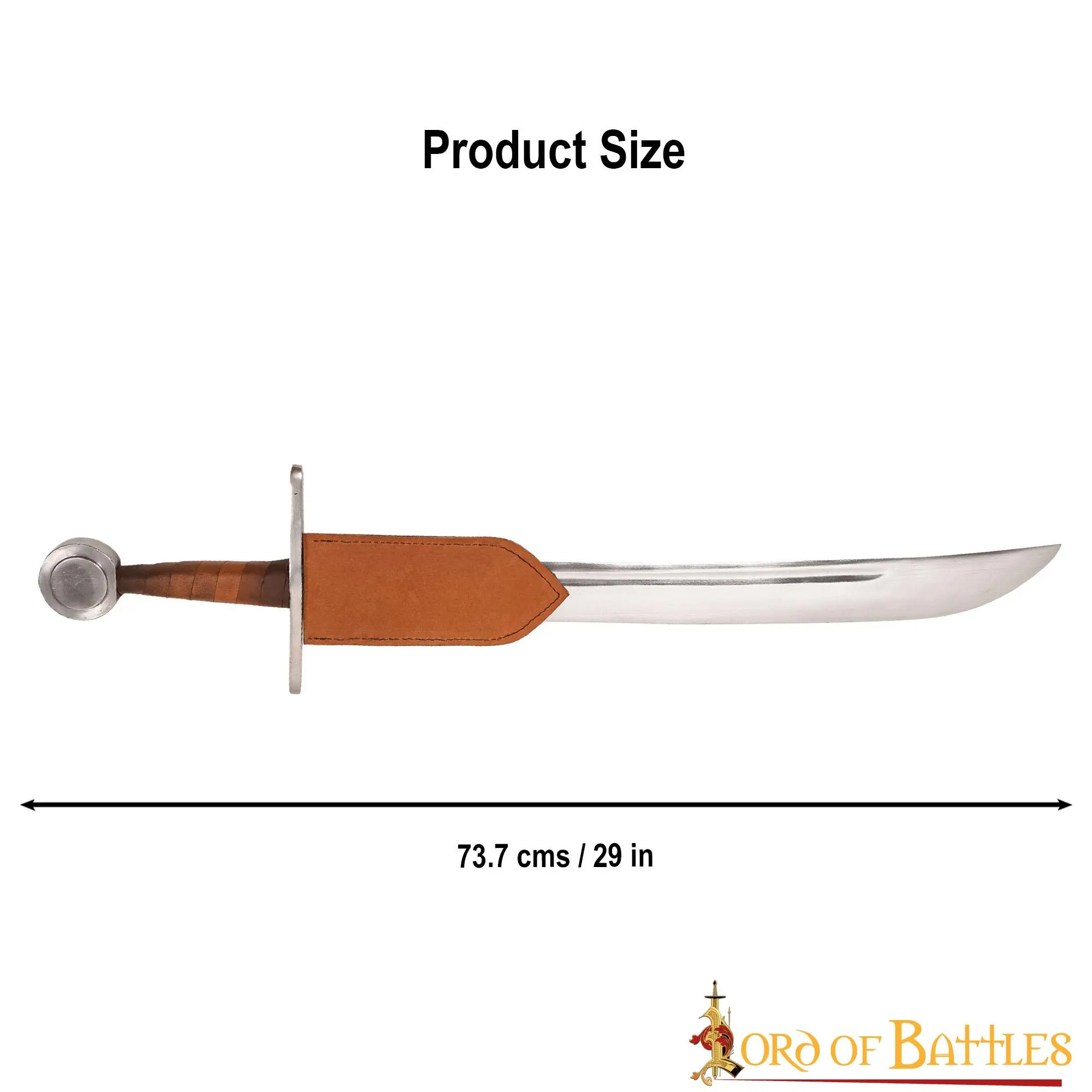 Being skilfully HAND FORGED from tough CARBON STEEL, this sword is fully functional and can be sharpened for real-life combat as well. The total length of this sword (including the handle and pommel) is approx. 29 inches. To easily carry it along, this sword comes with a leather sheath, equipped with a belt loop.