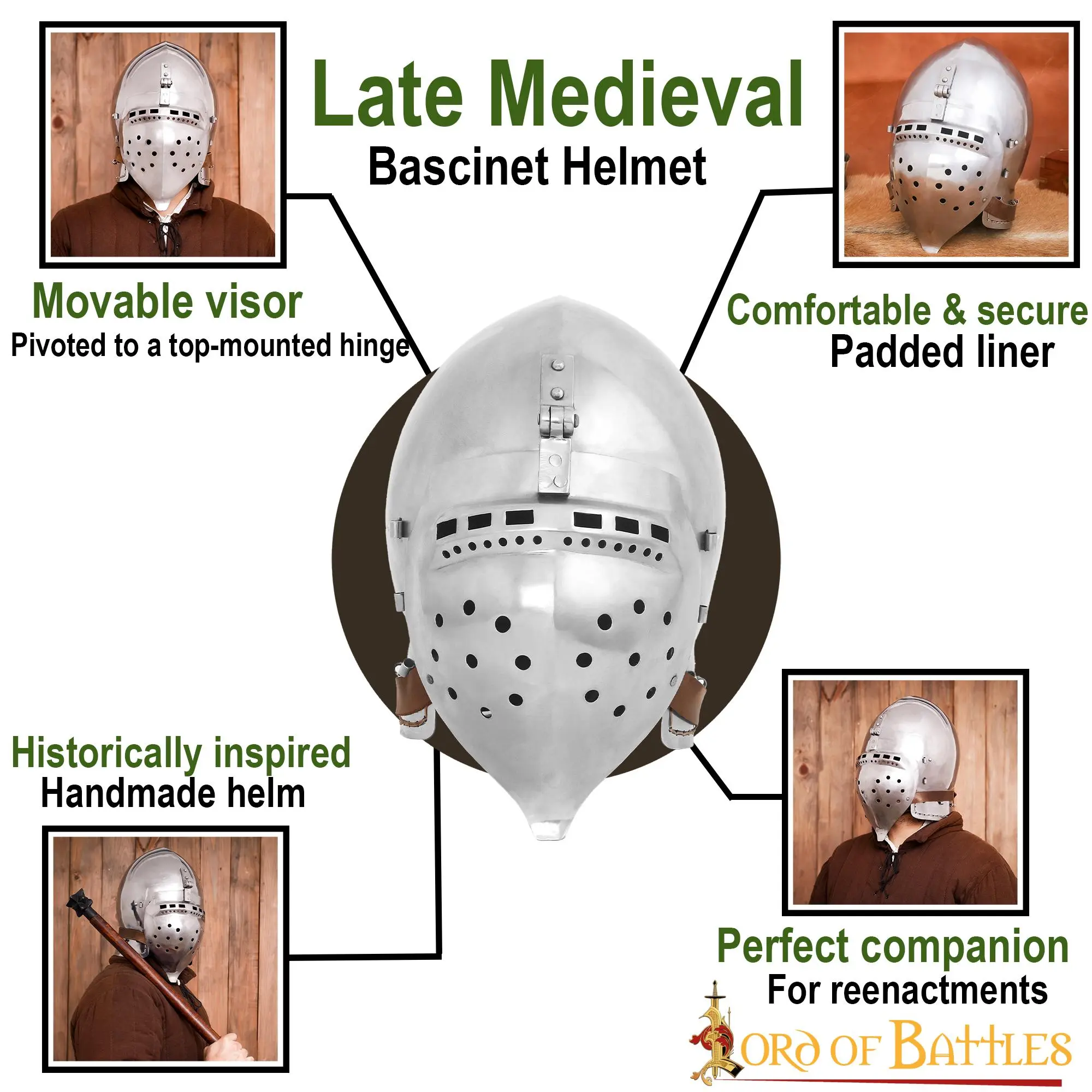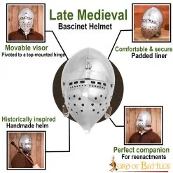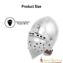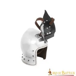 Are you looking for the ultimate FULLY FUNCTIONAL helmet for your next tournament or battle? Directly inspired by 14th-century originals, this BATTLE READY Klappvisor Bascinet will make an excellent choice for a knight like you! It can be worn with an aventail (sold separately) for optimum protection and look. Its carefully designed visor ensures minimal vision loss and breathing hindrance.