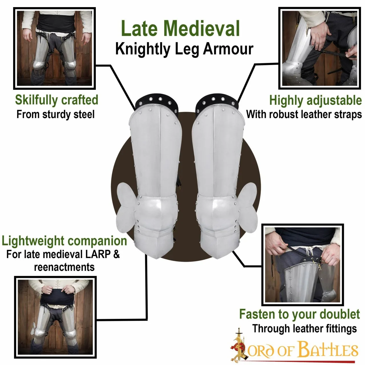 Our 14th to 15th Century leg armour set is an excellent piece of armour, painstakingly handmade from sturdy 16 gauge steel. Carefully devised as it is, it offers mobility and is extremely sturdy yet lightweight for its size!