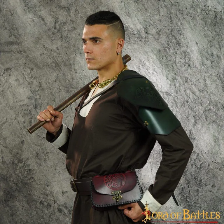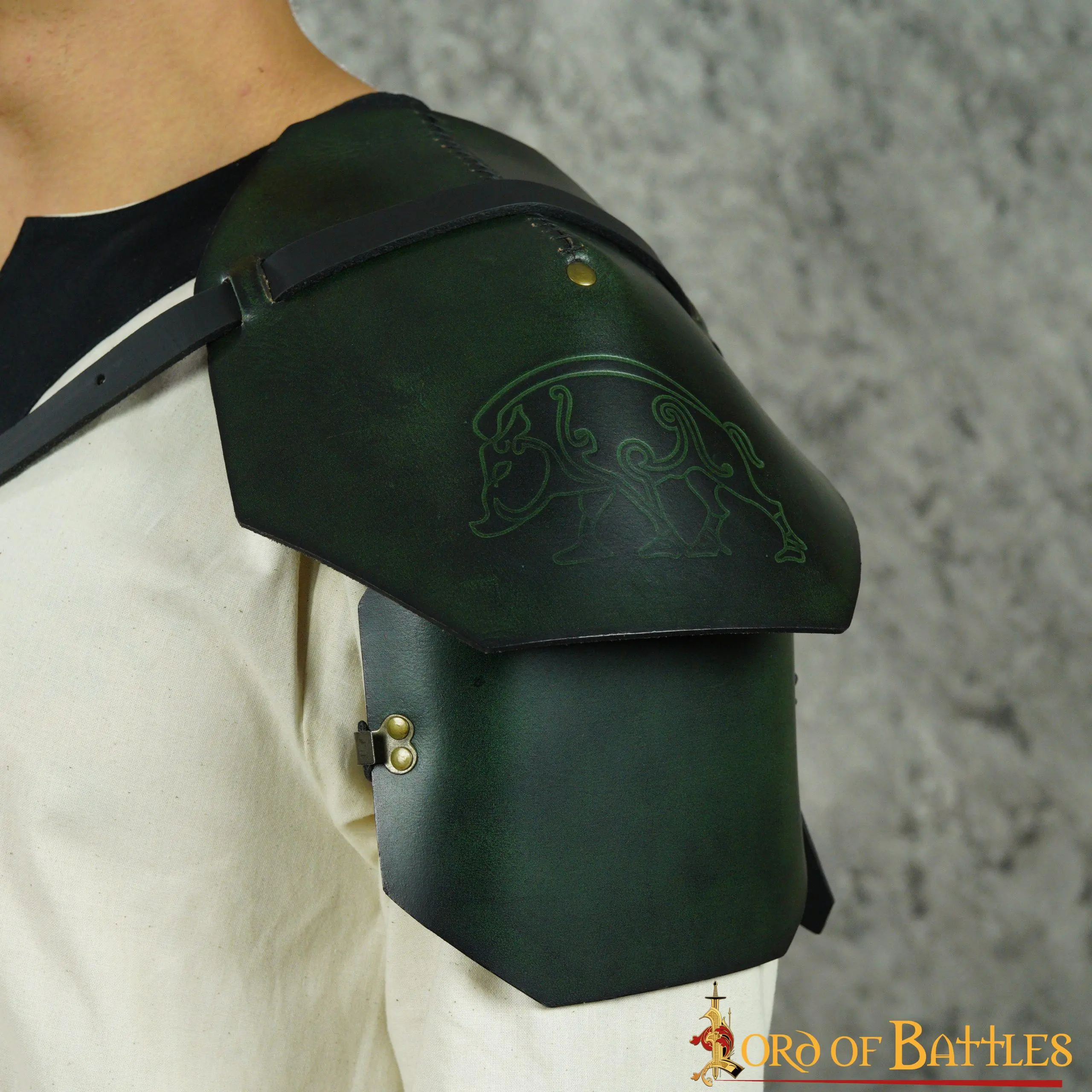 Looking for the best accessory that could make your ordinary costume a truly outstanding one? This leather pauldron, richly embossed with Mercia Kingdom design, will surely befit this character. This pauldron is provided as a single shoulder costume piece.