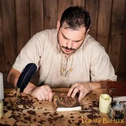 Our (7 X 5) inches leather journal is made painstakingly by hand from genuine buff leather and has 78 finest quality, deckle-edged natural handmade papers, bound together using sturdy cotton string. The diary closes with a sturdy, antique brass lock.