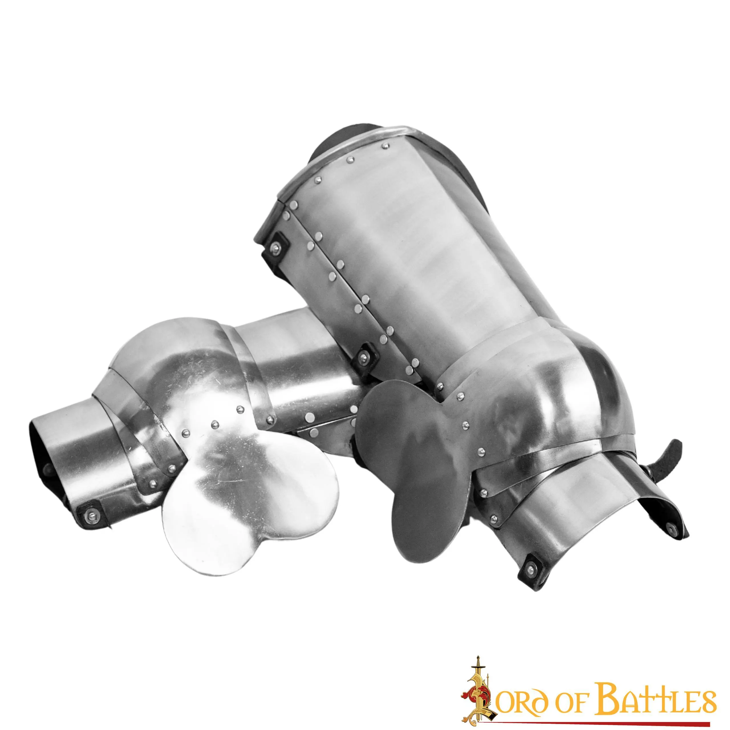 Their historically inspired shape, and even the large wing defending your knee, add an additional touch of accuracy to any 14th-century French armour.
