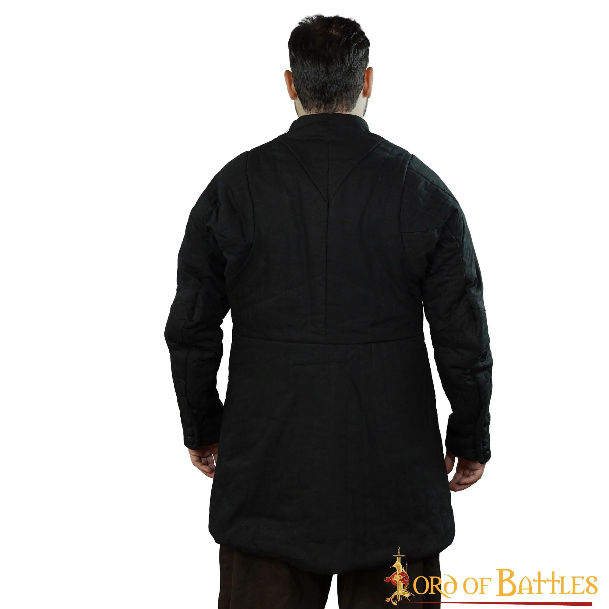 Our 14th-century buttoned, quilted gambeson is handmade from two layers of STURDY CANVAS COTTON sandwiching a thick layer of padding, making it a perfect armor on its own for any light infantry, archer, gunner, or any soldier relying on mobility to avoid a battle they don’t want to fight. It could also be worn under plate armor or chainmail, making them more comfortable to be worn. This specific gambeson is inspired directly by an EXISTING GAMBESON that belonged to Charles de Blois during the 14th century.