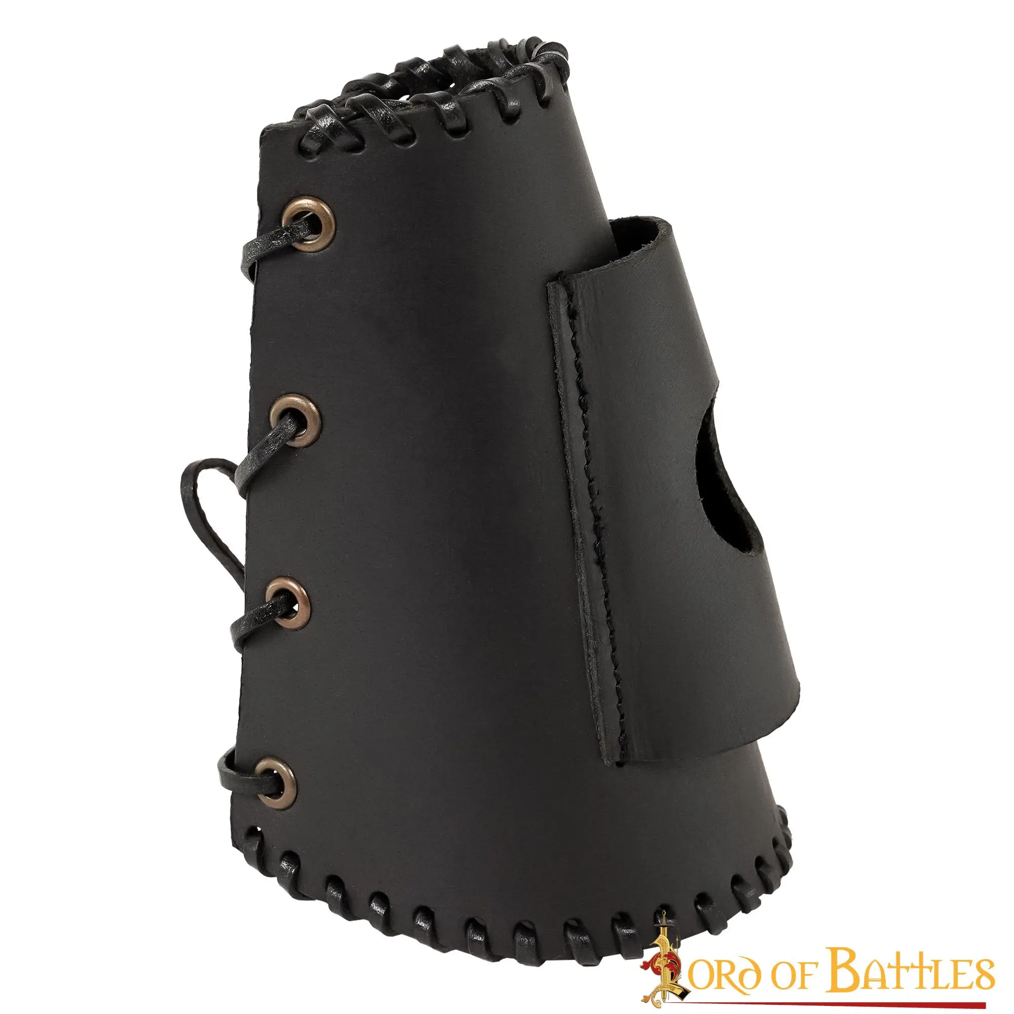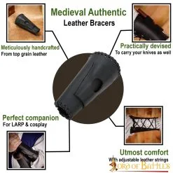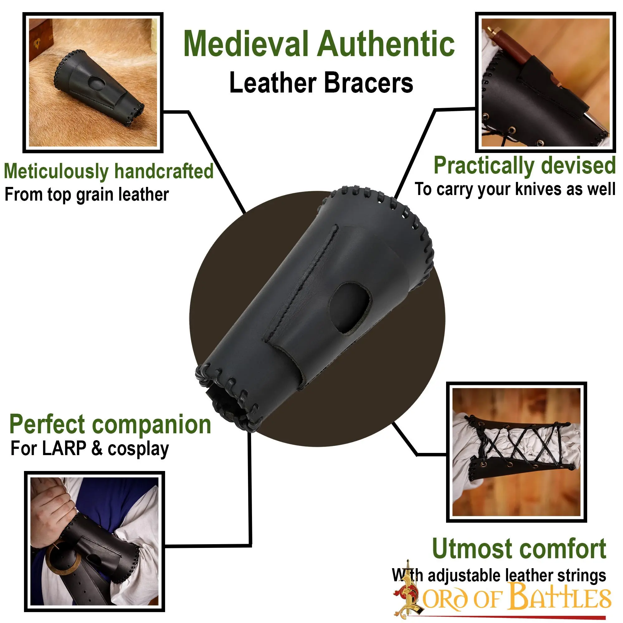 Out on a royal pursuit with the King? Don these regal leather bracers, equipped with a knife holder, to make an impression like never before!