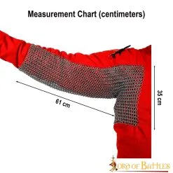 Our mail voiders were used under the plate armour by knights who didn’t want to encumber themselves with the weight of a full chainmail shirt. Under the armour, it protects the lower part of the arm and armpit from an attack that targets the weak spot of the armour.