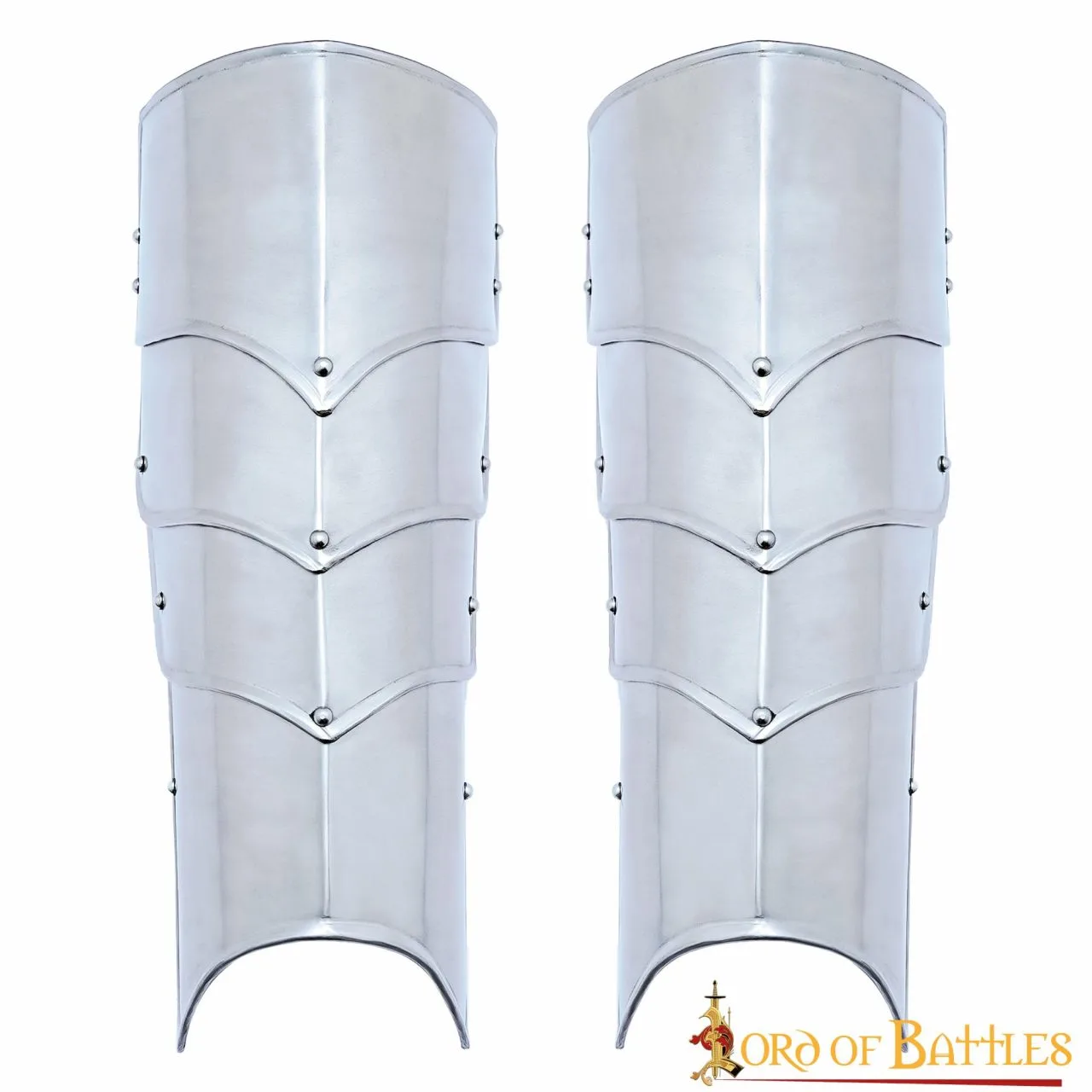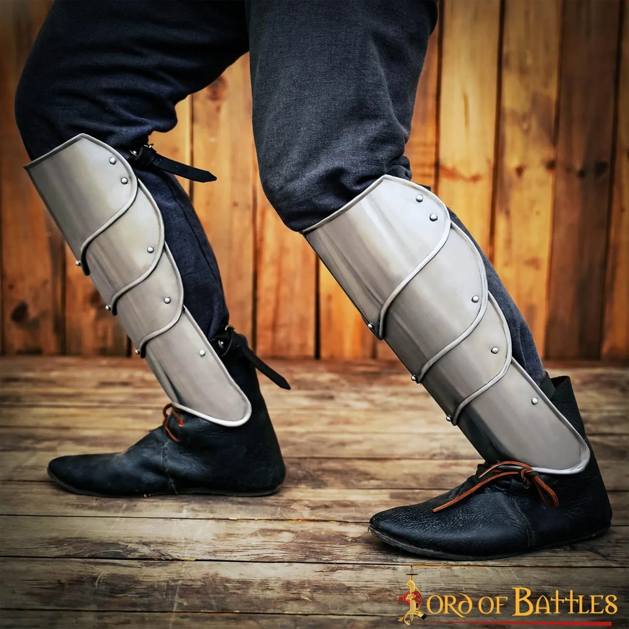 Those creatures from your enemy’s realm think twice before they make way to yours. For your realm is guarded by you; a mighty knight, mounted on his faithful horse, donning his ELEGANT KNIGHTLY GREAVES which have protected the guardian in all his quests and made him stand out. So make sure to suit up with our MEDIEVAL FANTASY KNIGHTLY GREAVES while you suit up for your next LARP, cosplay, reenactment, or medieval event.