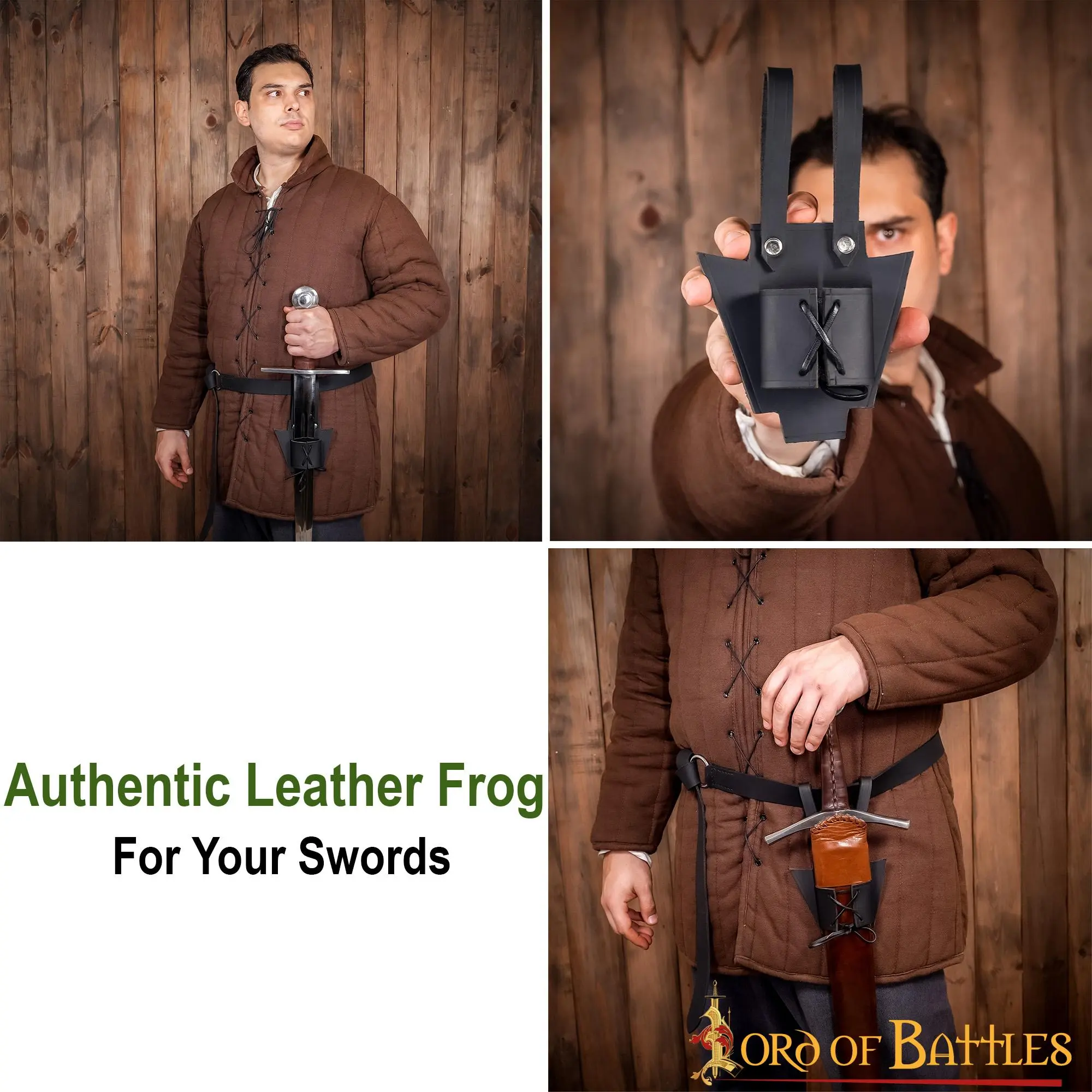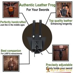 For you are a knight out on another venture, this stout leather frog will make sure to always carry your mightiest sword for you. It is ideal for your medieval events, LARP, or a character from your favourite universe!