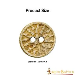 This set of five horn buttons have a diameter of approx. 2 cm. These are devised for practical usage and have a unique charred design adding to a raw Viking look.