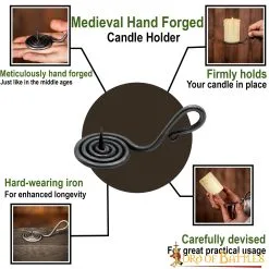 This 12 cm long candle holder has been skilfully hand-forged from sturdy iron and has a rustic appeal adding to its medieval look. Apart from being a functional gear for your day-to-day use, it is an ideal tool for reenactments.