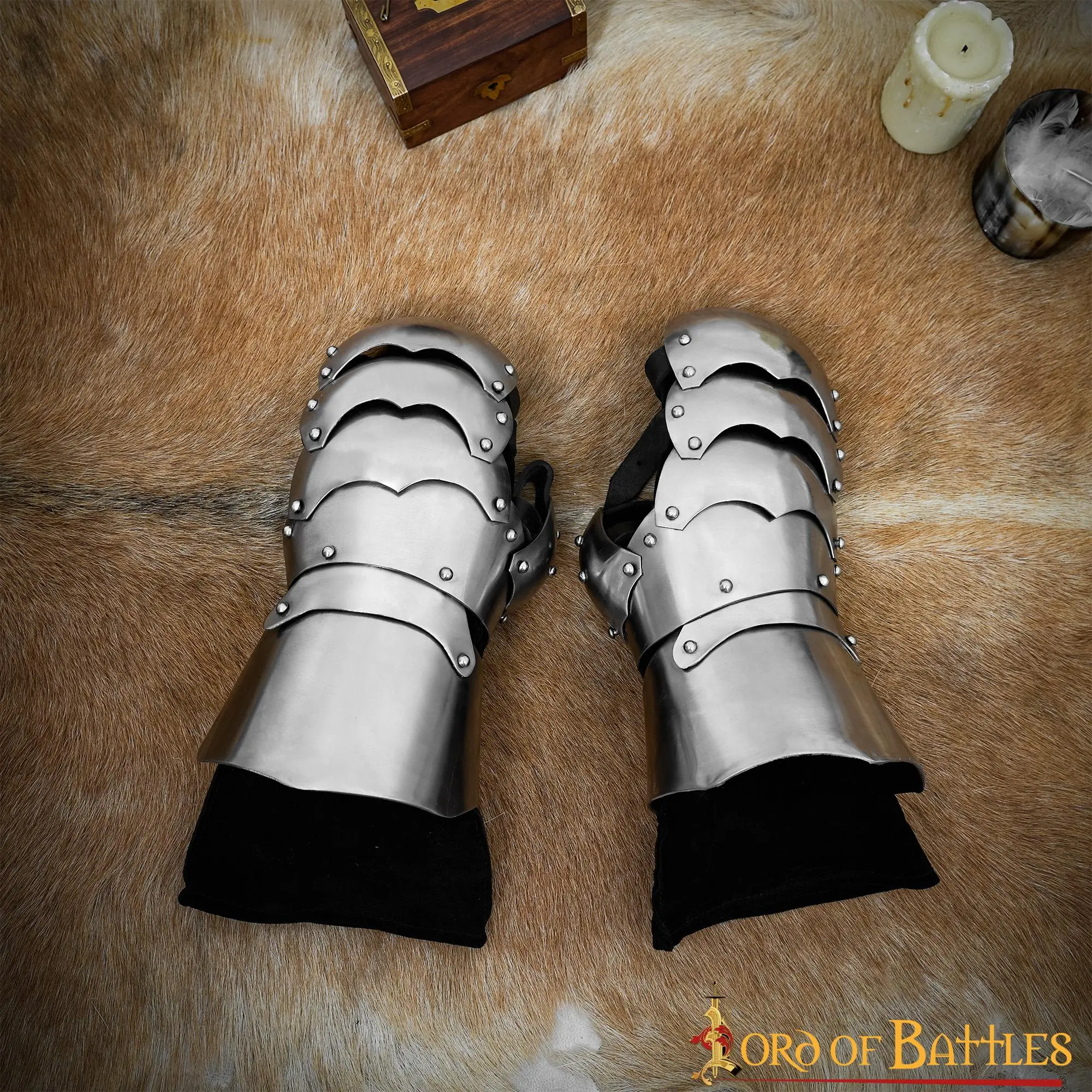 Are you looking for the maximum possible protection while retaining significant mobility? Search no further: these sturdy and well-designed mitten gauntlets are what you need! Whether you are a knight on foot or mounted on his horse, this pair of MITTEN GAUNTLETS will offer the highest level of protection on the tournament field! The riveted plates allow freedom of movement while fighting your foes.