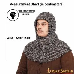 Our medieval chainmail coif/hood is the classic chainmail hood popular in LARP, reenactment medieval events. It would be the perfect protection under your favourite kettle hat or even worn as your main head protection for your favourite character.