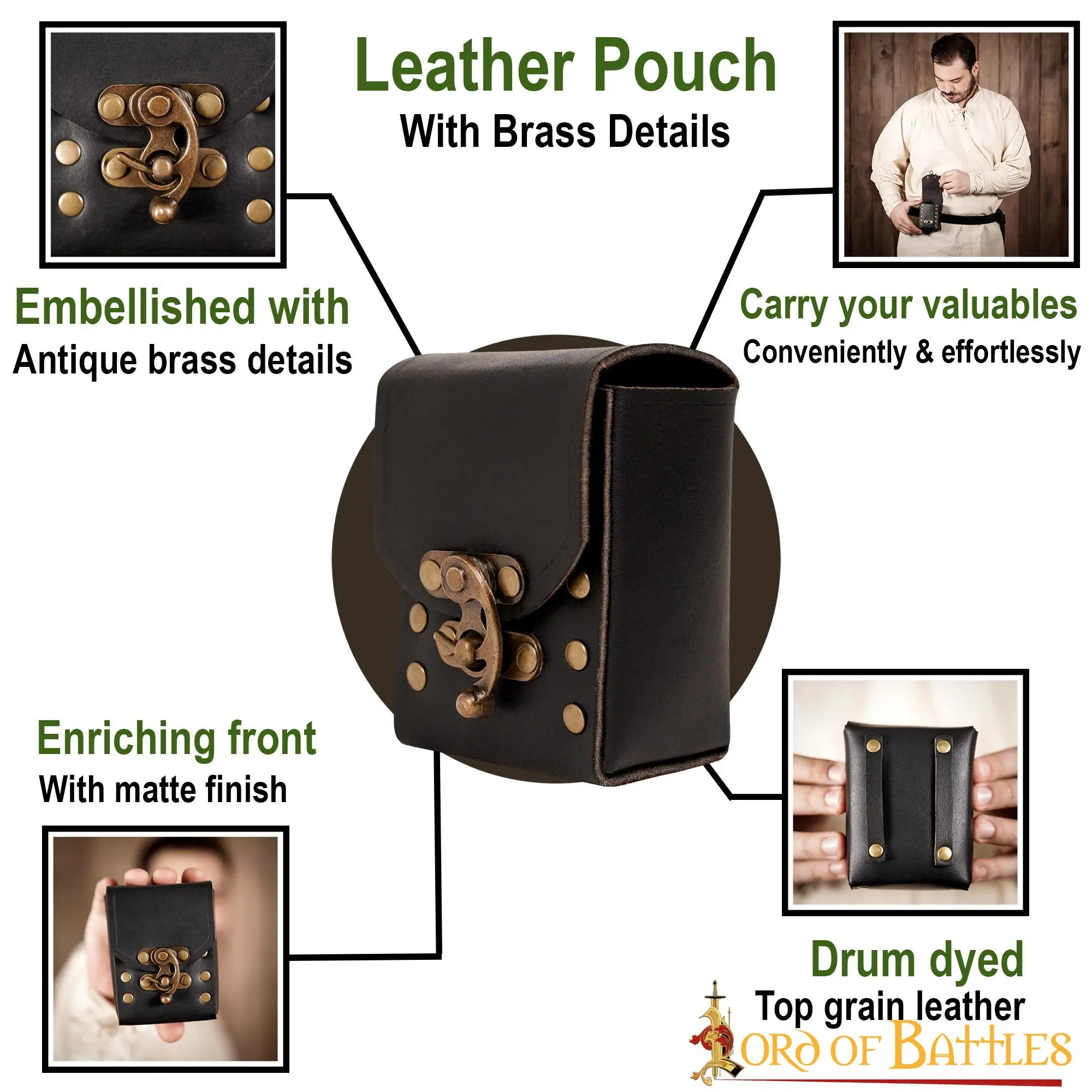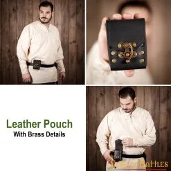 This leather bag is meticulously handcrafted from robust ETHICALLY SOURCED BUFF LEATHER (3-3.5 mm thick) that makes it truly appealing. The bag is riveted throughout for a sturdy and reliable construction. Its total length is approx. 10 cm and total width is approx. 8 cm. These dimensions make it convenient to carry your ID cards, debit or credit cards, coins, etc. The bag closes with an antiqued PURE BRASS lock, making it look more attractive than ever! The belt loops riveted at the back can fit a belt of approx. 3-3.5 cm width.